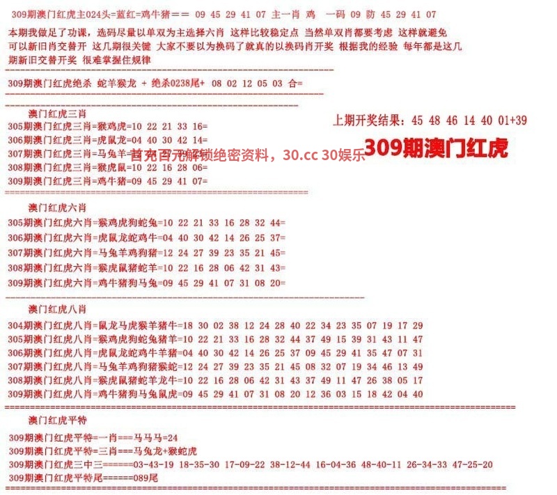 | 309期:男女两肖【男肖+兔猪】开:鼠06准 |
